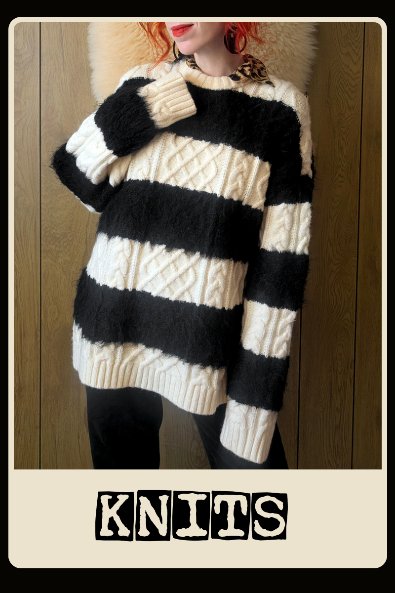 Trophy Stripe Skull Rugby Knit Polo Sweater