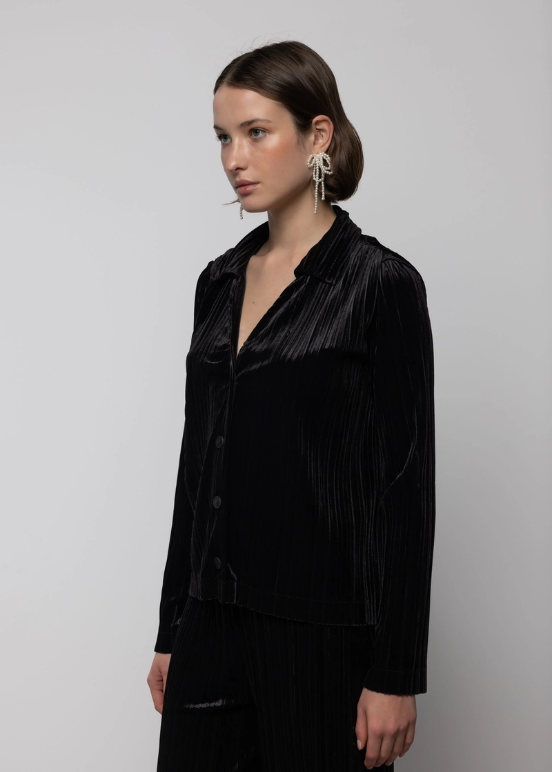 Black Velvet Pleated Shirt