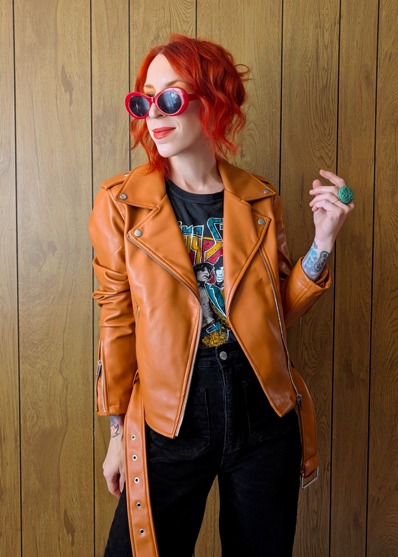 Pumpkin Faux Leather Moto Jacket