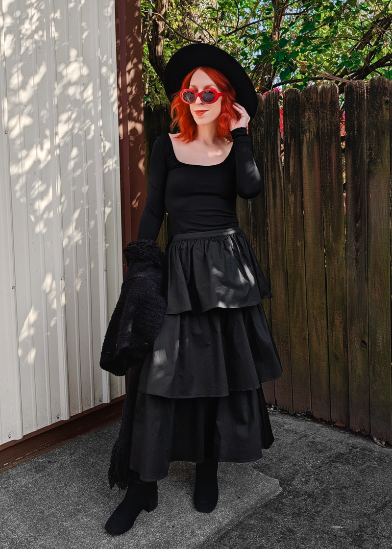 Black Ruffle Taffeta Oversized Crossbody Bag