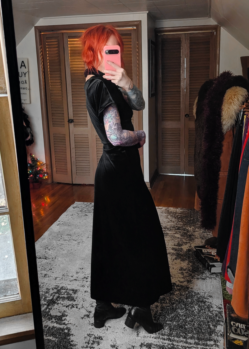 Winona Black Velvet Bubble Hem Babydoll Dress