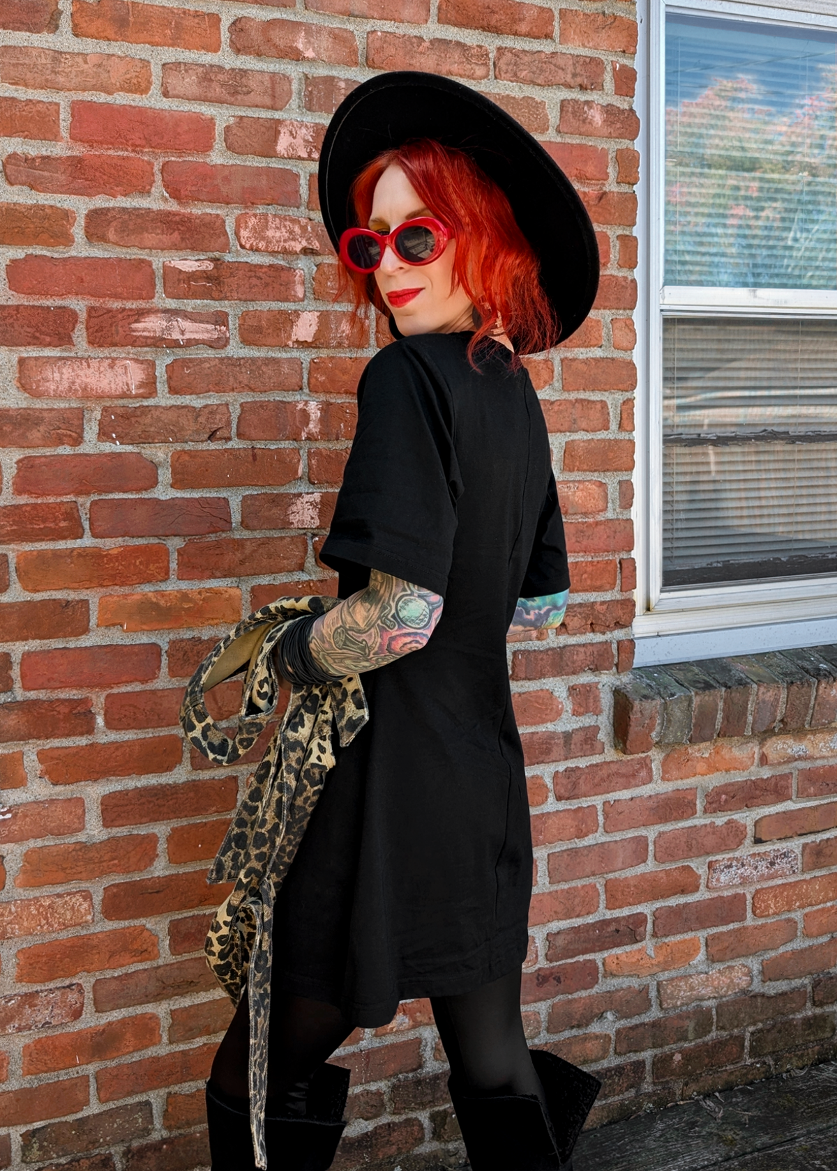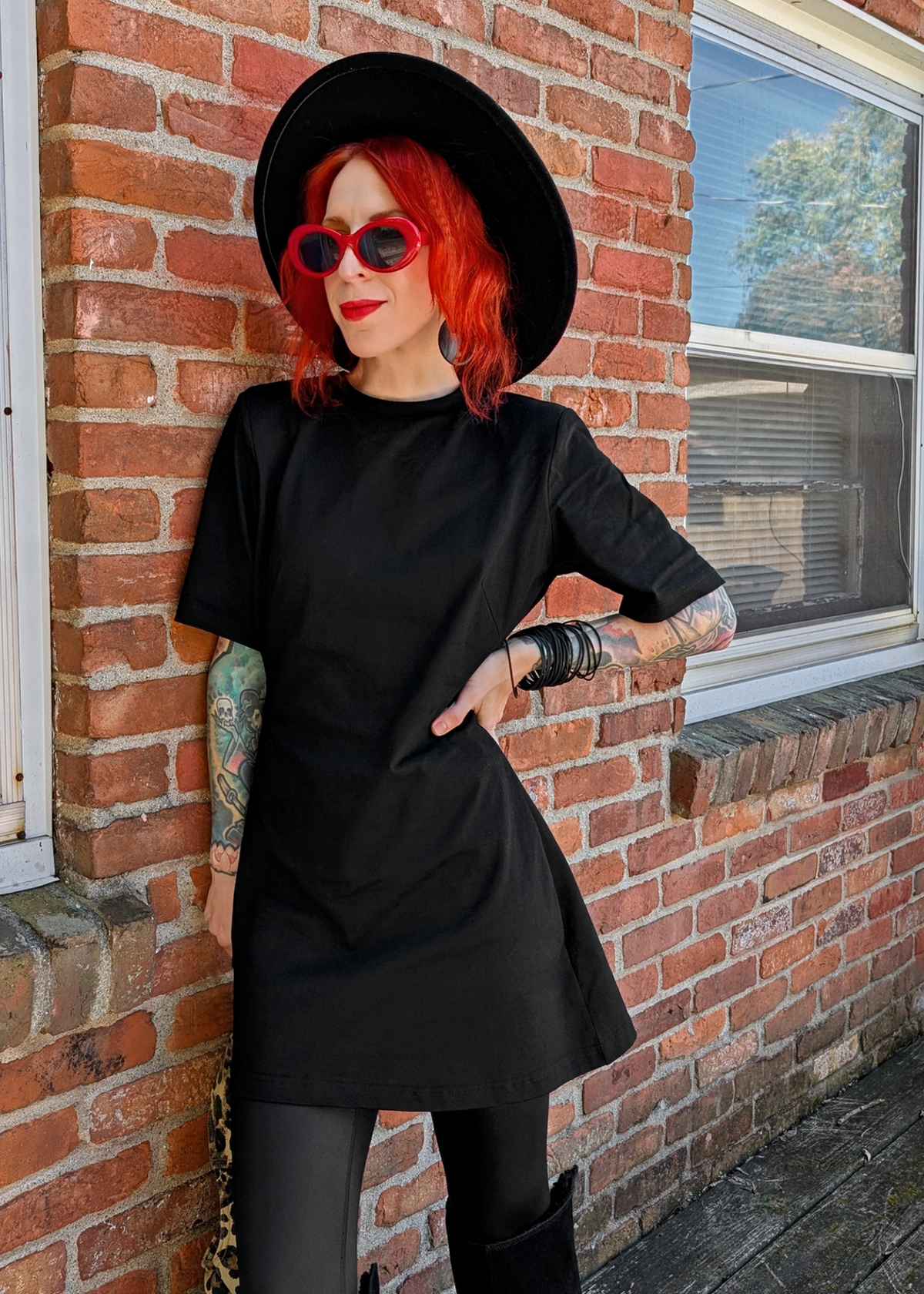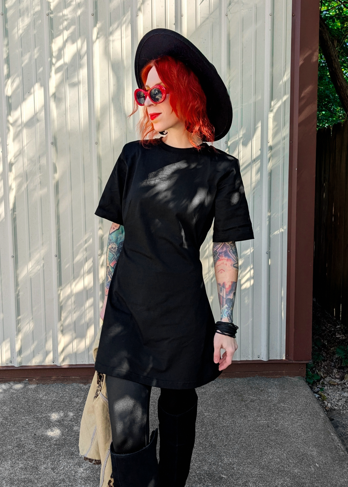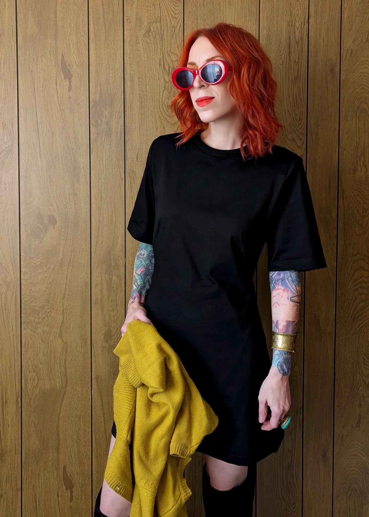 Black Jersey T-Shirt Mini Dress with Shoulder Pads