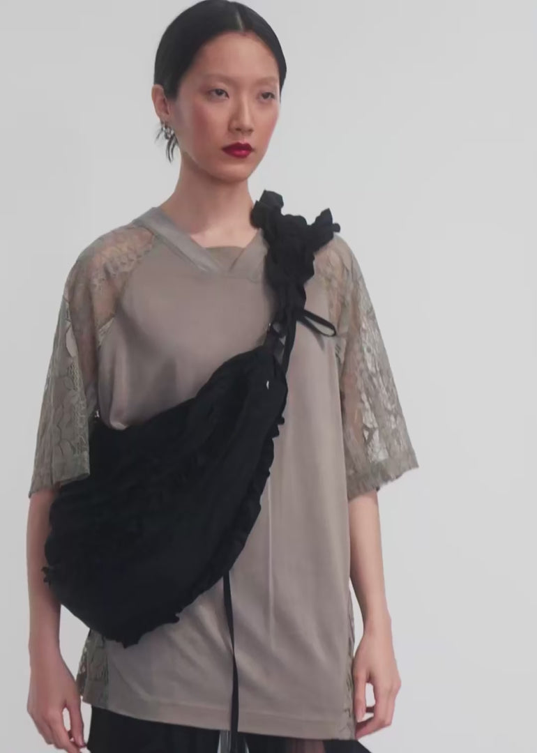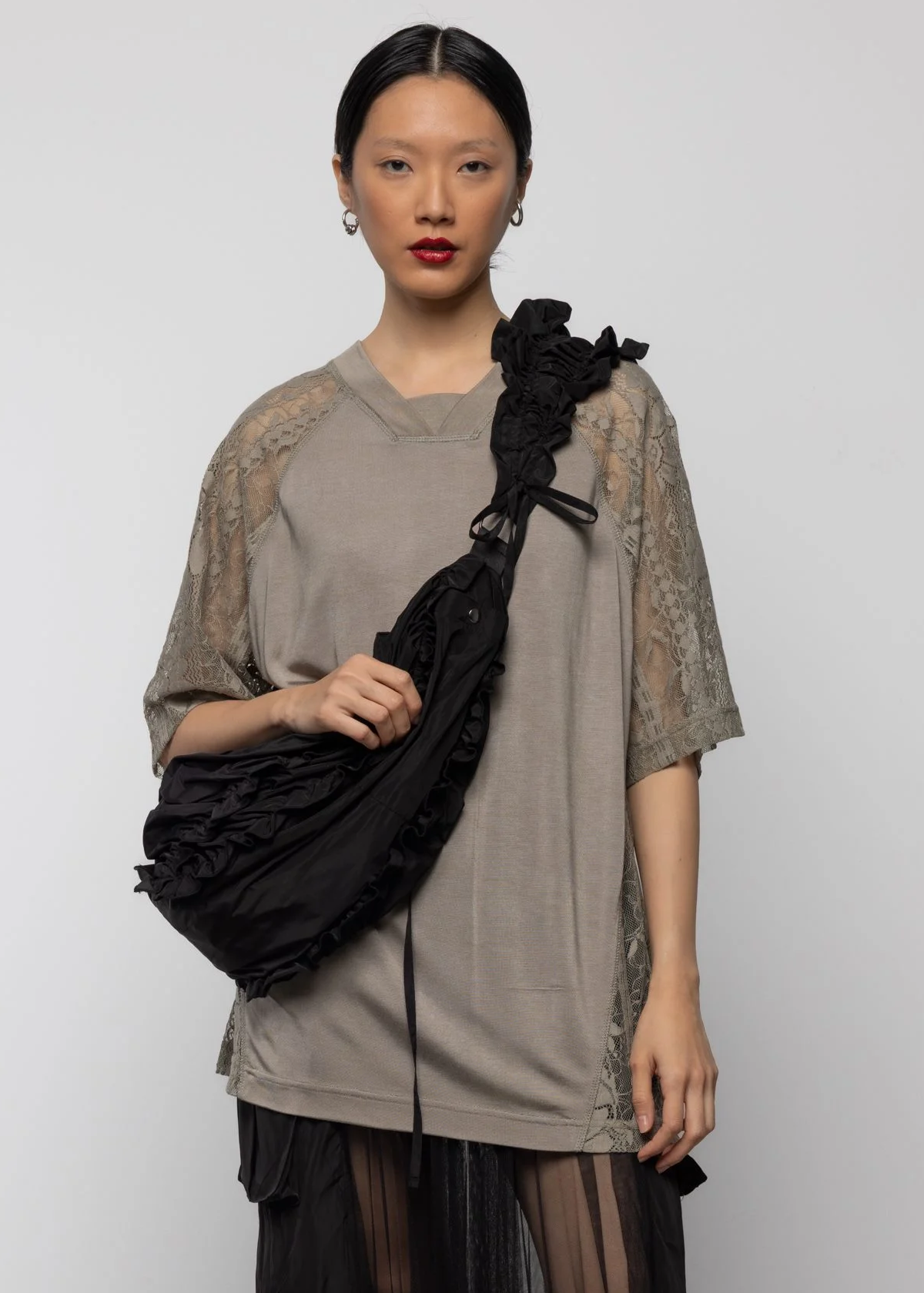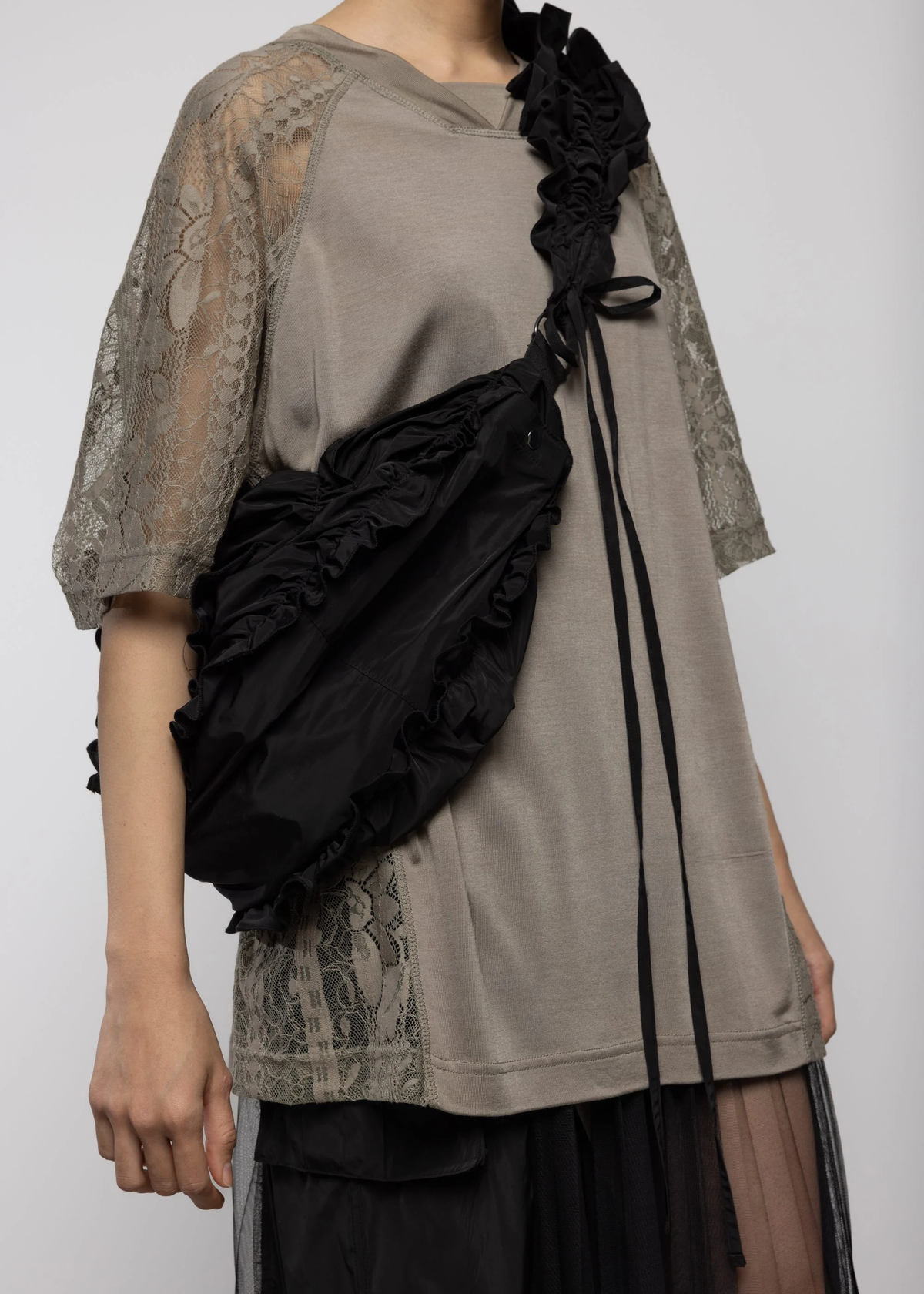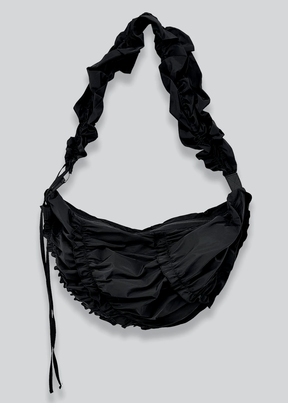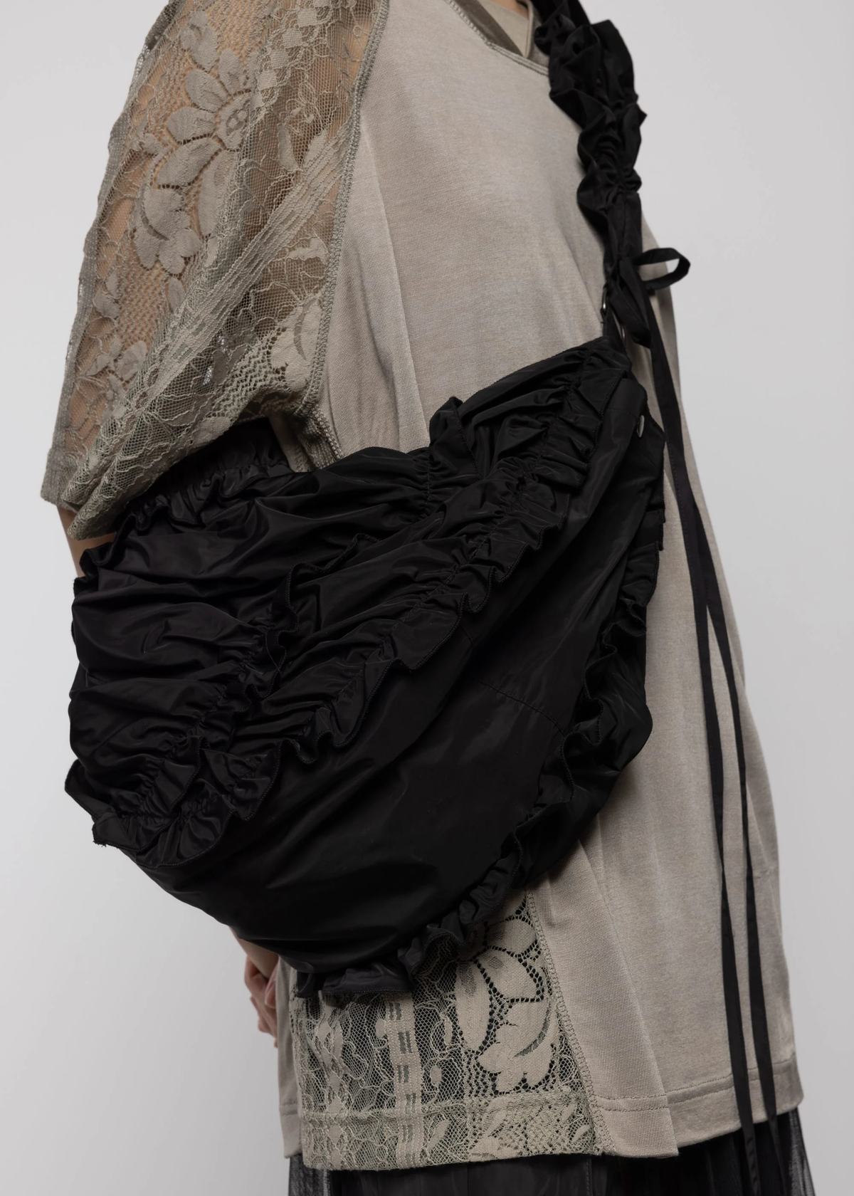Black Ruffle Taffeta Oversized Crossbody Bag
