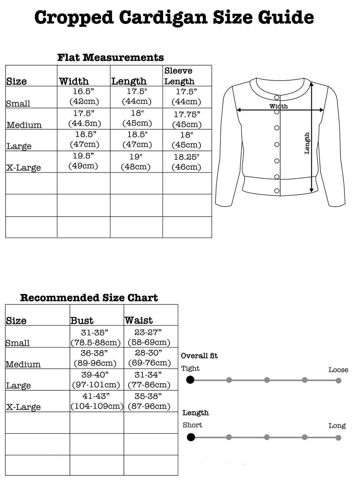 • M - Bust: 17.5" across unstretched | Length: 18" | Sleeve length: 17.75"