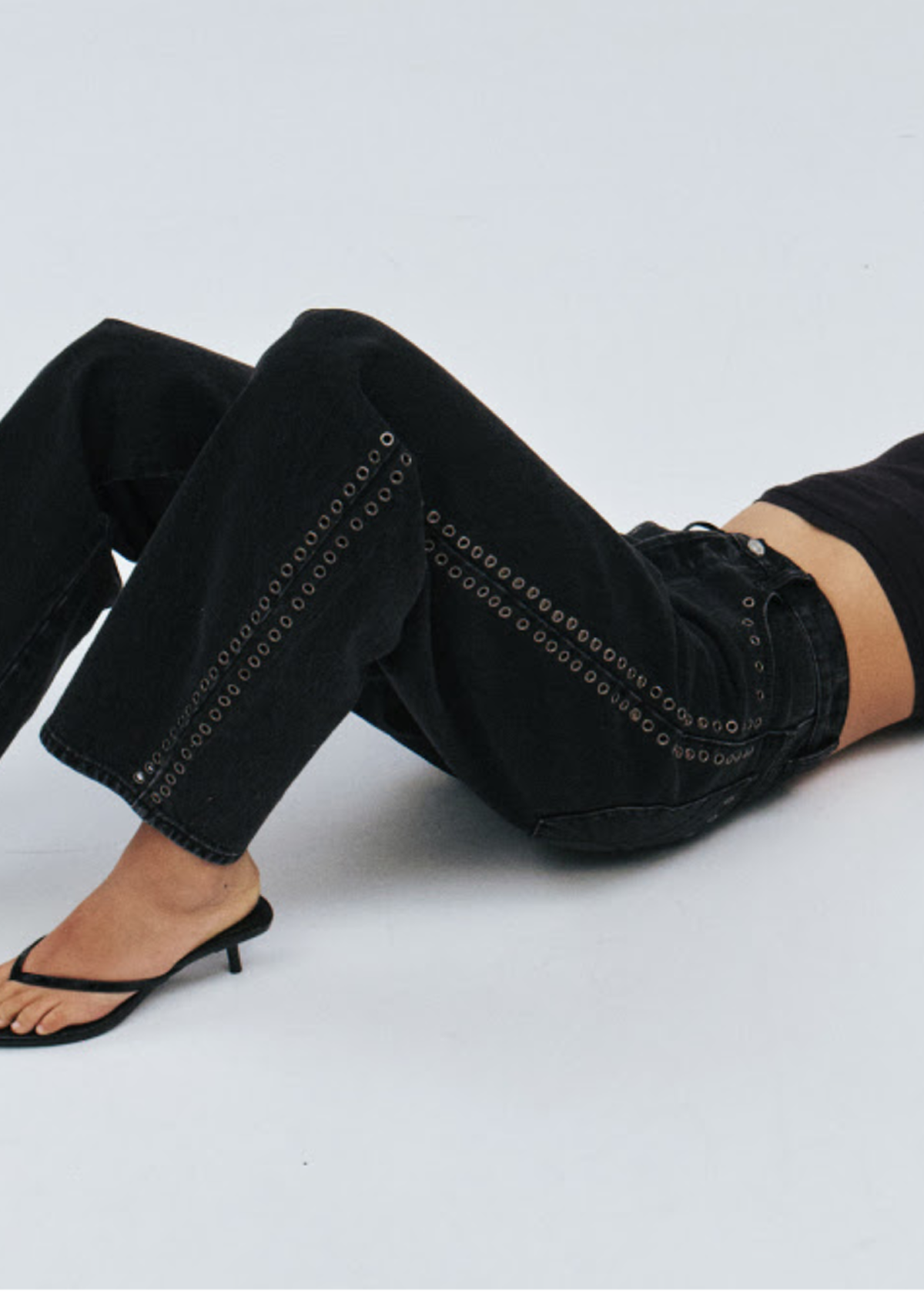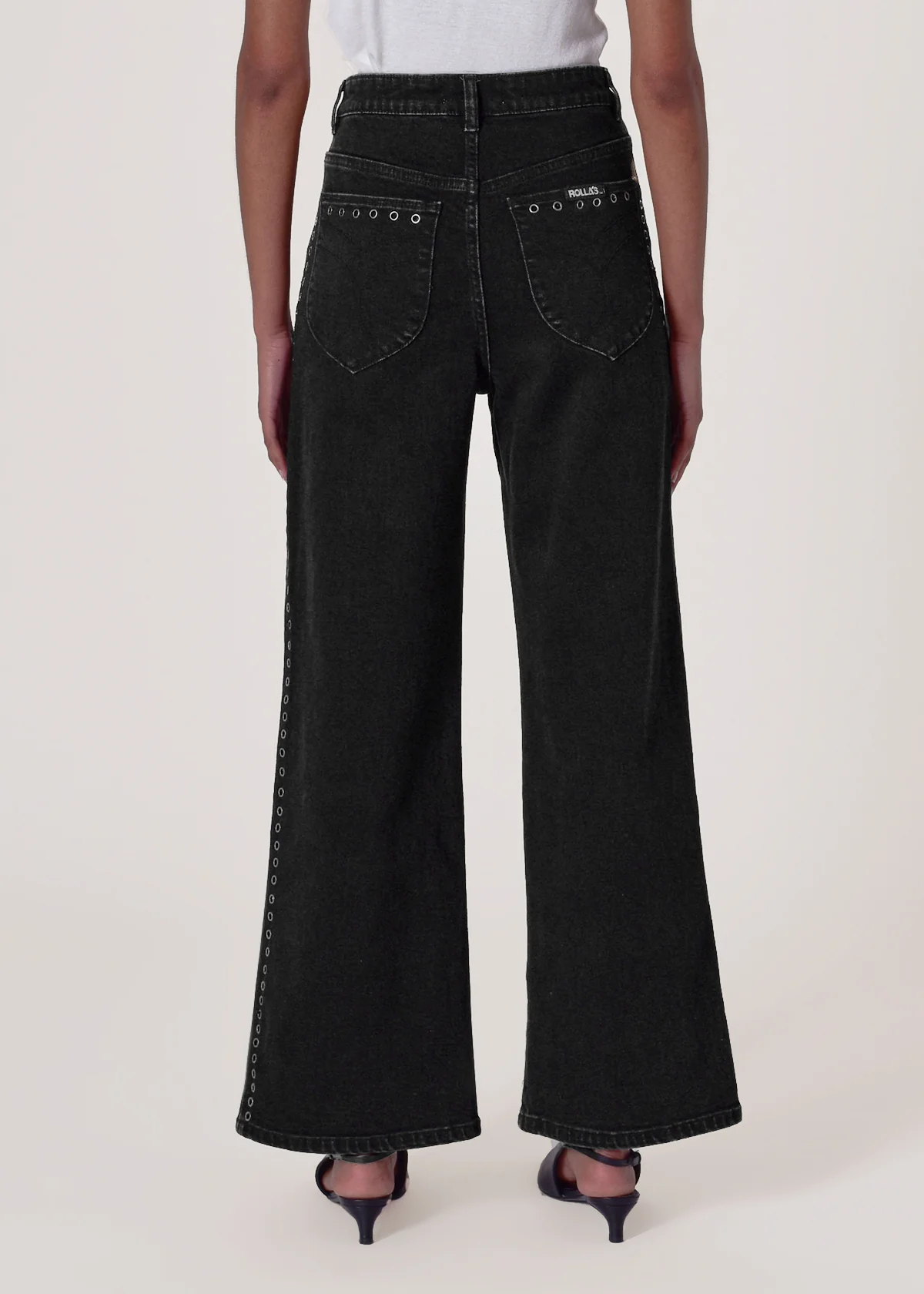 Black Sand Eyelet Wide Leg Sailor Scoop Jean