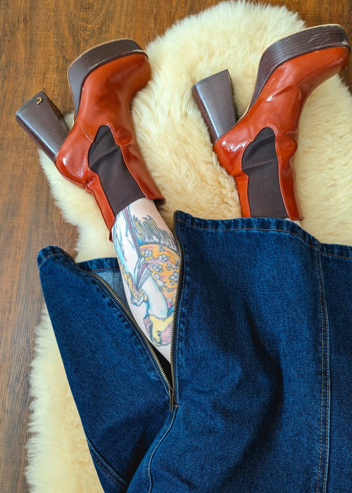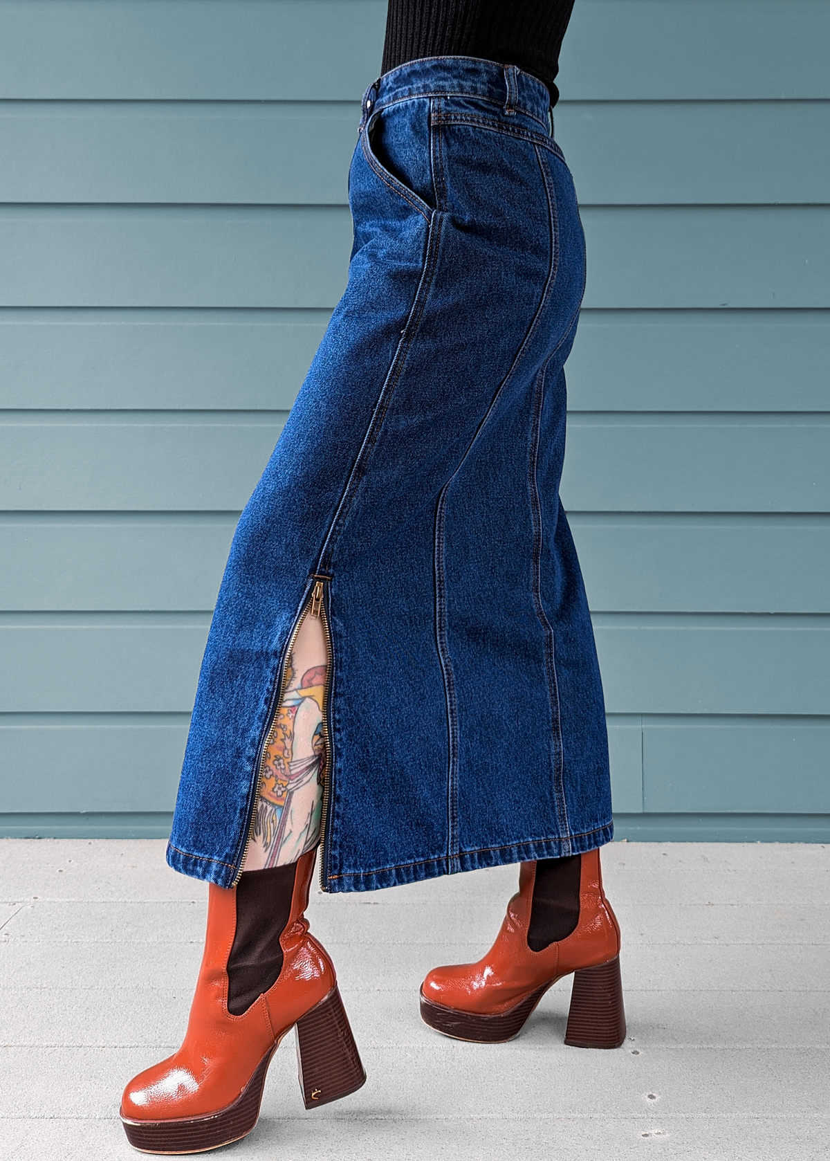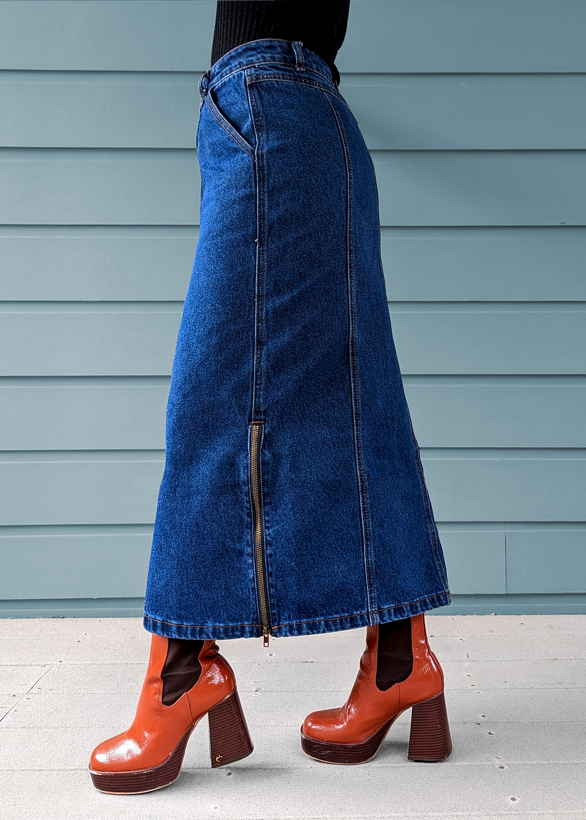 Mediterranea Zipper Denim Midi Skirt ✿ Organic Cotton