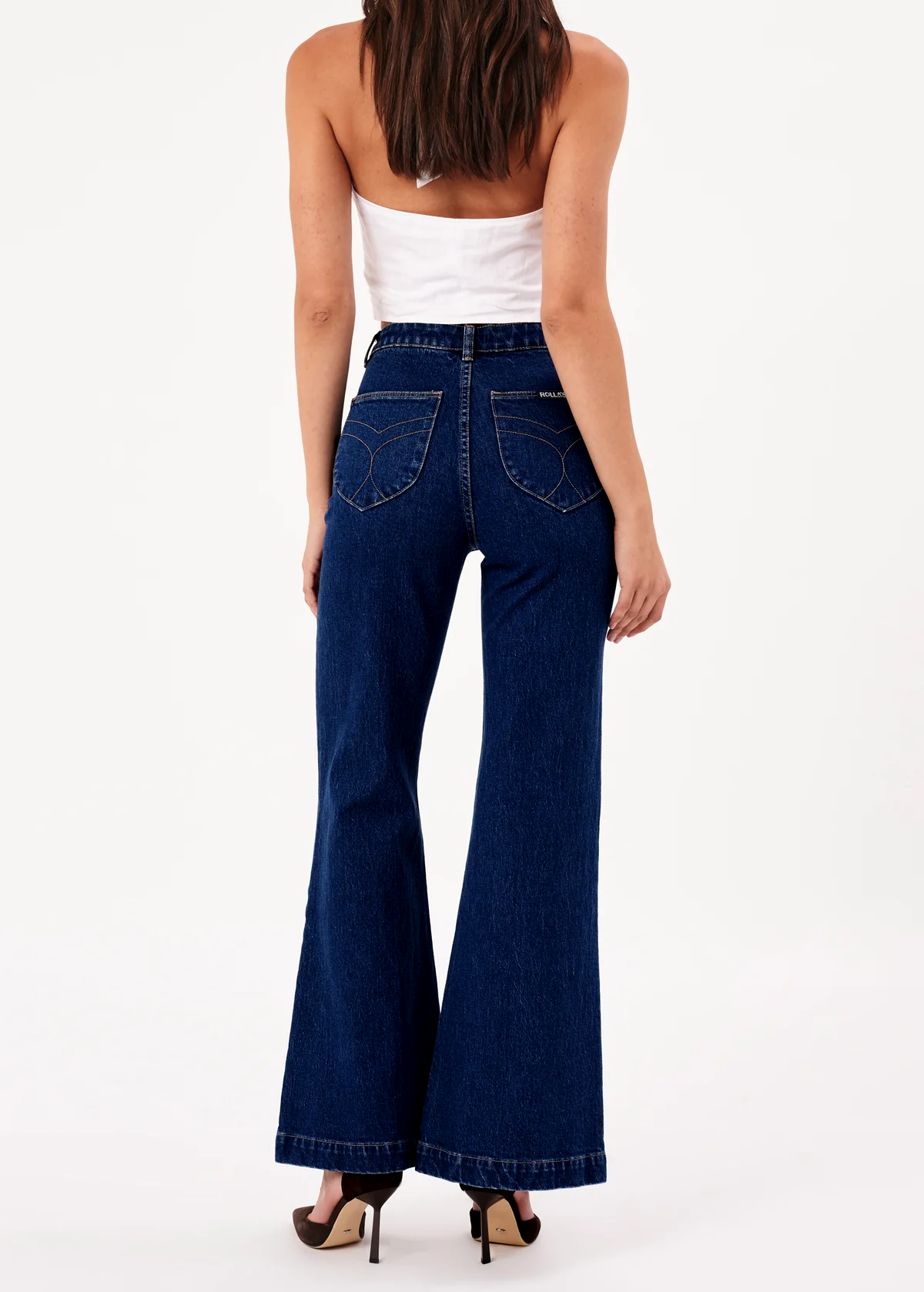 - Fitted through waist, hip, and thigh, with a true flare leg