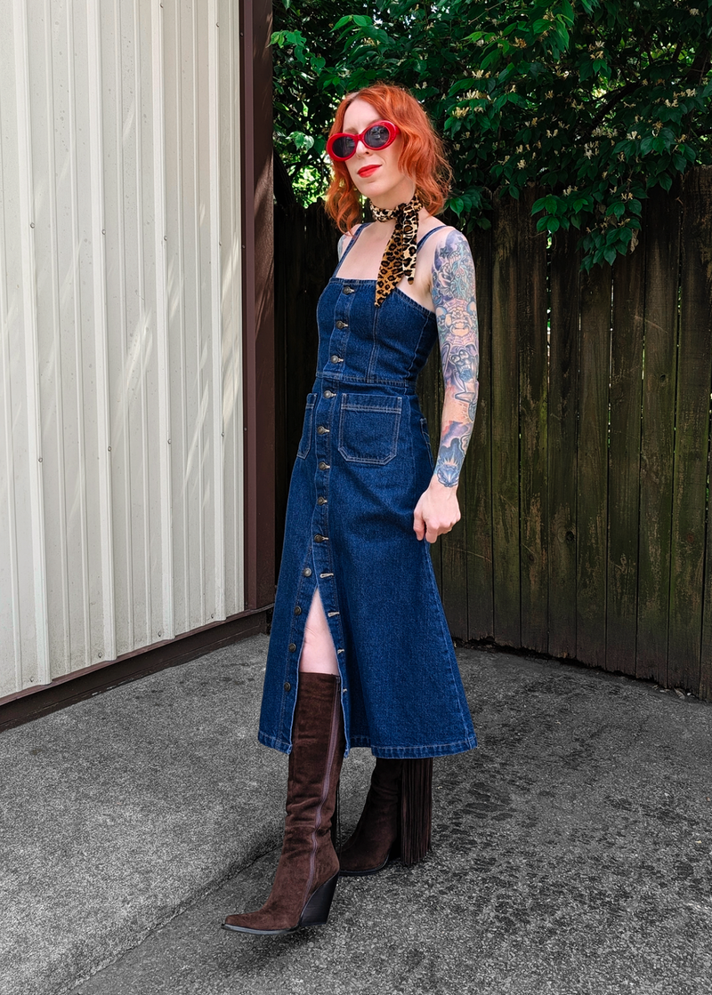 Dark Indigo Denim Mara Strappy Midi Dress ✿ Organic Cotton