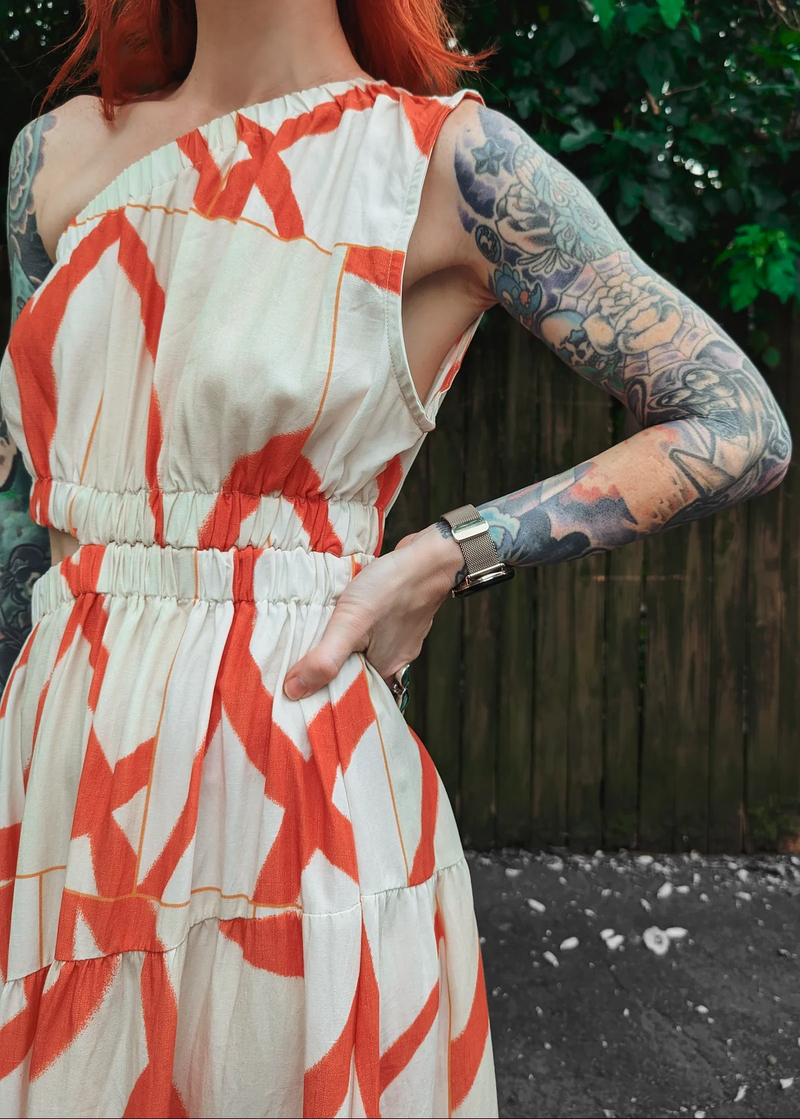 Yasmin One Shoulder Cream & Orange Midi-Maxi Dress