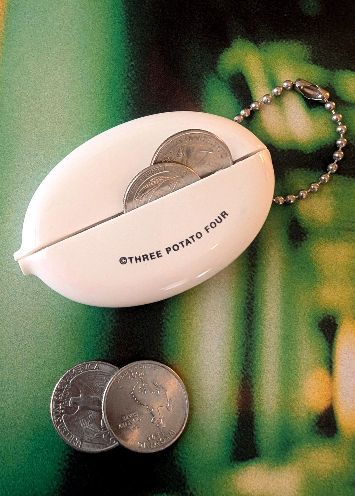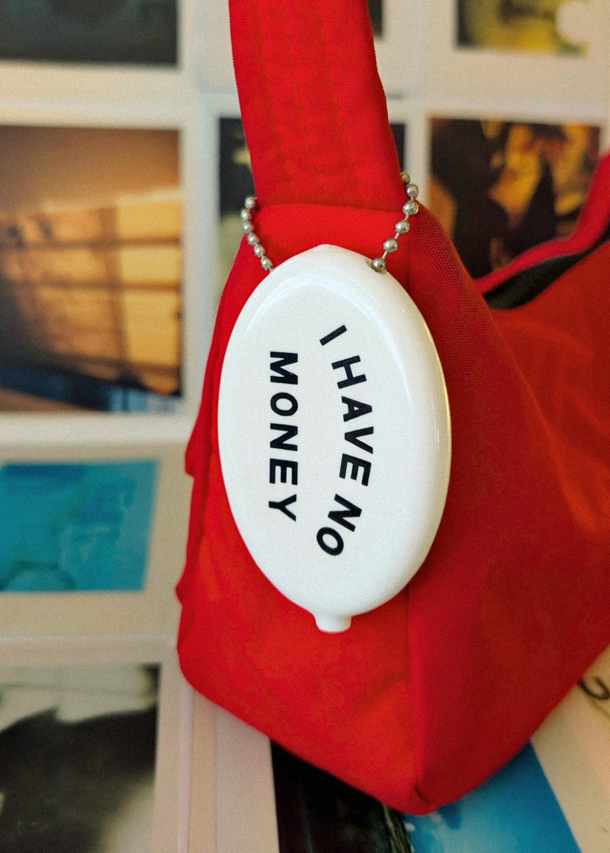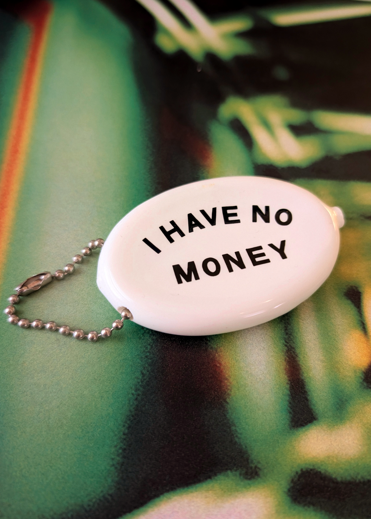 Once a memento of old-school amusement parks and summer camps, this vintage-inspired rubber coin pouch is perfect for keeping all of your coins, cash, and secrets safe! Squeeze to open. White colorway with "I Have No Money" in black. Hang it on your car keys or on your bag!