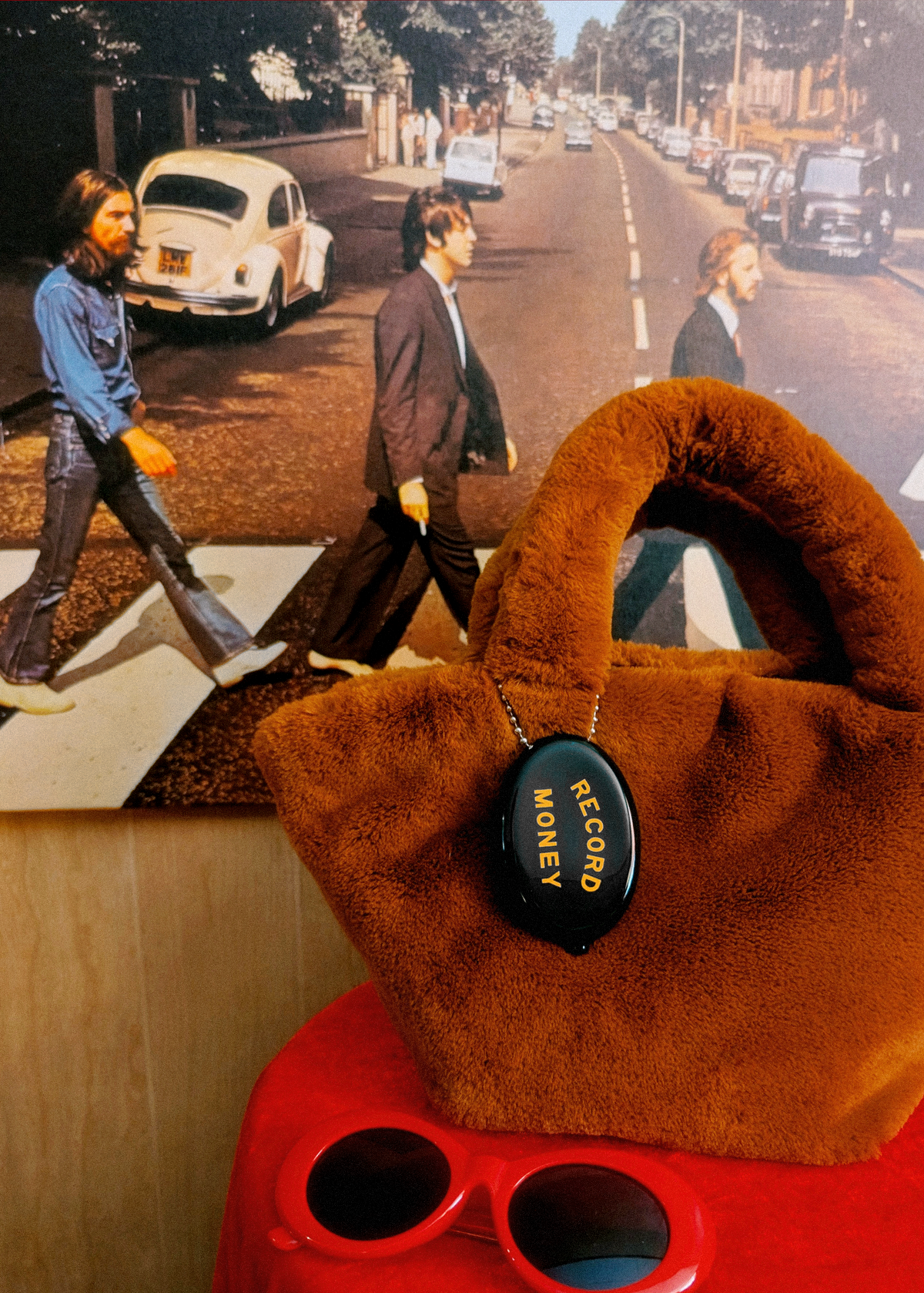 Once a memento of old-school amusement parks and summer camps, this vintage-inspired rubber coin pouch is perfect for keeping all of your coins, cash, and secrets safe! Squeeze to open. Black colorway with "Record Money" in golden yellow.  Hang it on your car keys or on your bag!