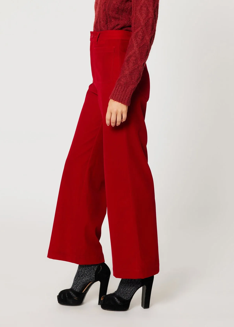 Ruby Red Velvet Wide Leg Sailor Pant