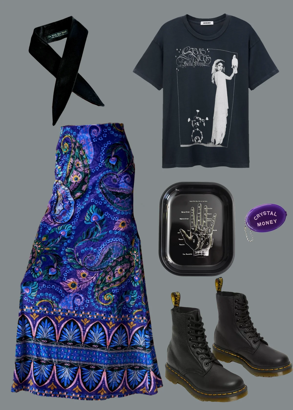 It's giving a lil '60s psychedelic meets '90s whimsigoth vibes! Crafted from luxe stretch velvet, this maxi skirt features an elasticated waistband, making this A-line skirt comfortable, body friendly, and perfectly suited for all shapes and sizes.