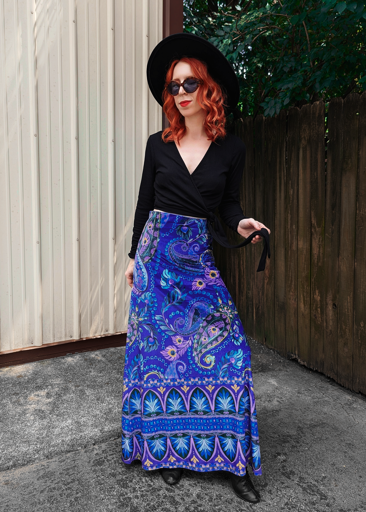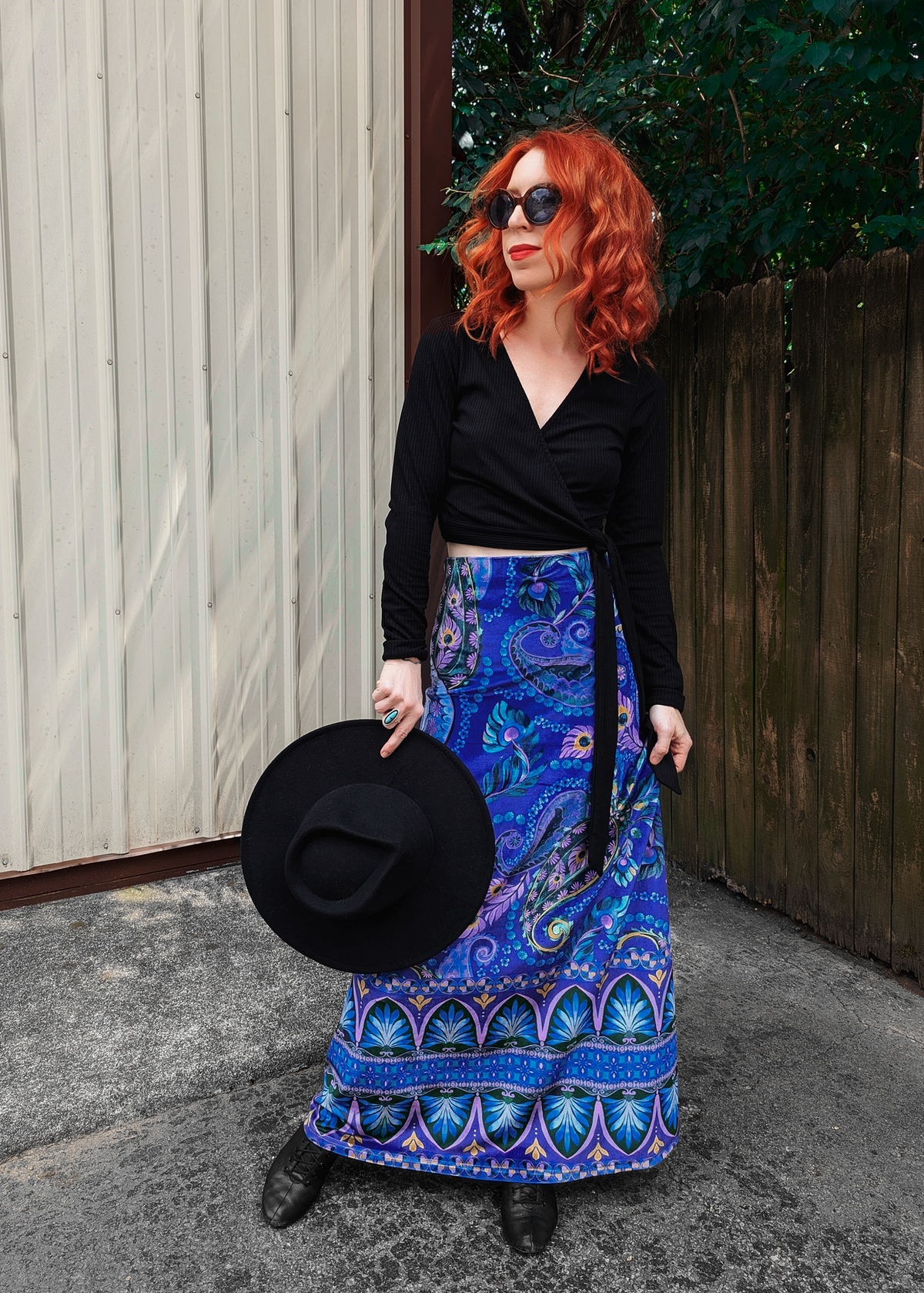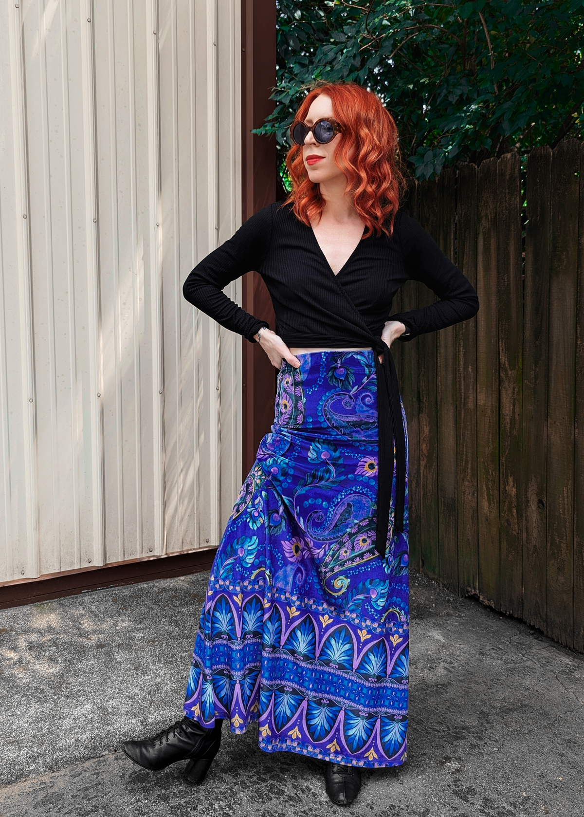 HOW TO STYLE: For a 90s look, we'd style this with a band tee and combat boots; and if you wanna go more 60s/70s, pair it with a turtleneck, vest, and knee-high boots. Taylor styled it here with the Black Swan Rib Wrap Top.