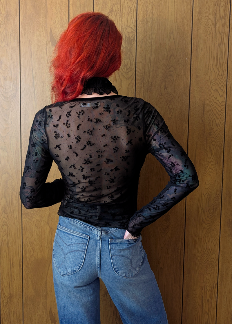 Victorian Ghost Black Chiffon and Lace Sheer Blouse