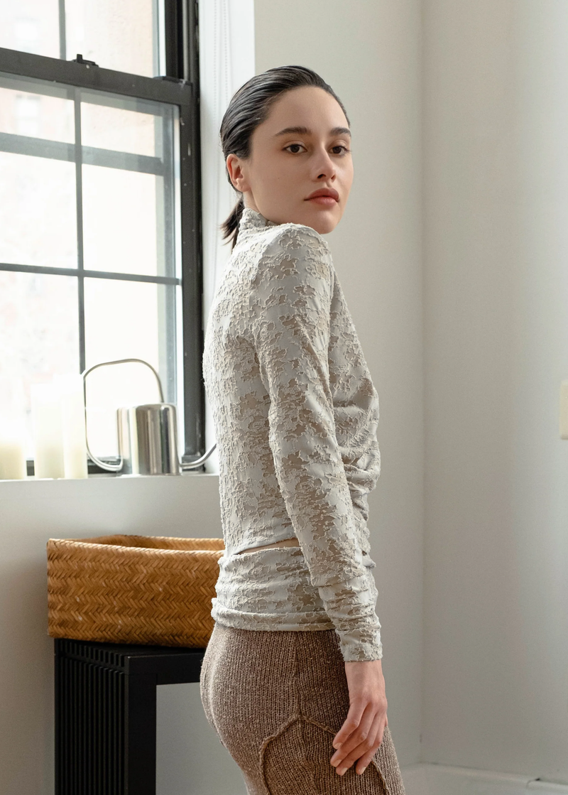 Taupe-Grey Burnout Floral Moonlight Cut-Out Blouse