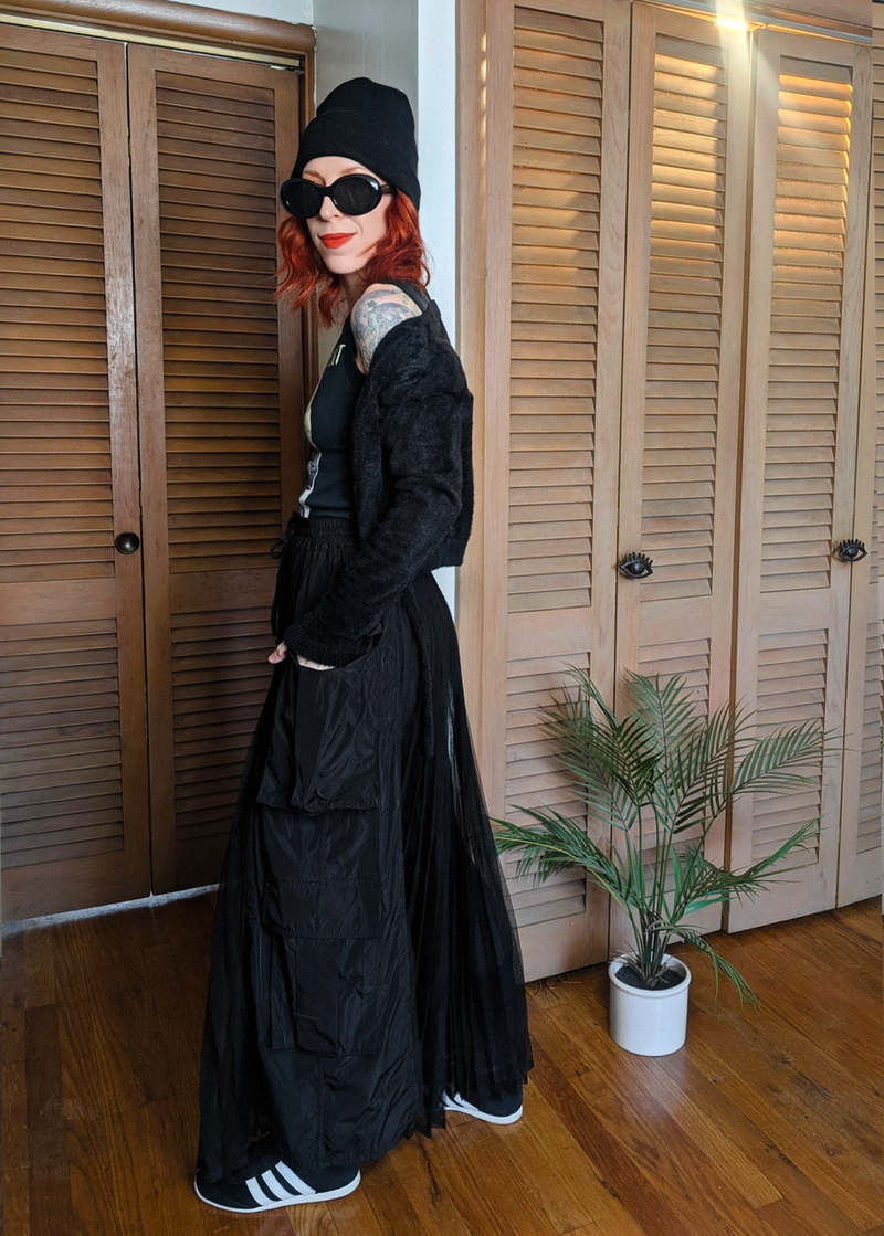 Pleated Sheer Mesh Cargo Midaxi Skirt