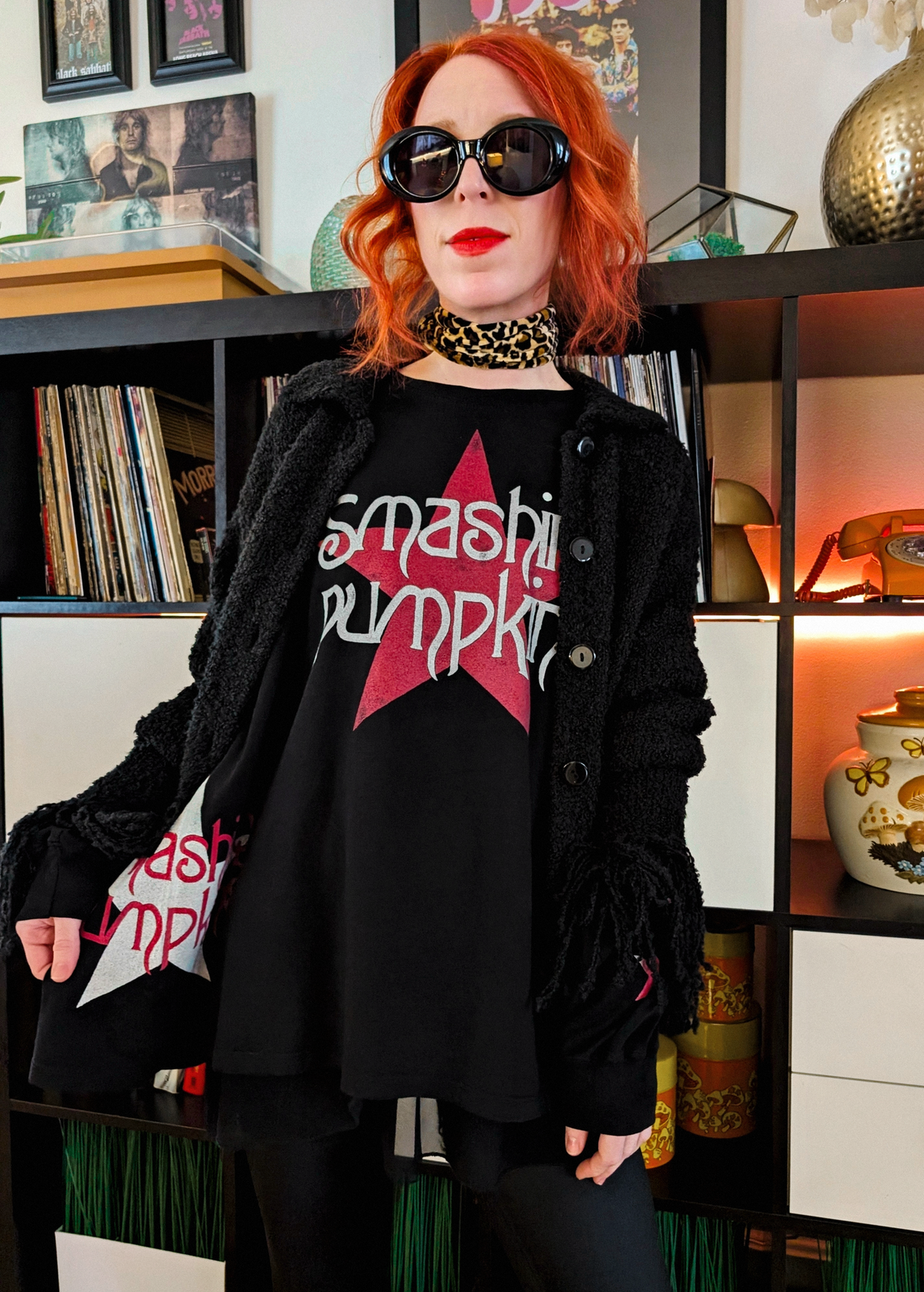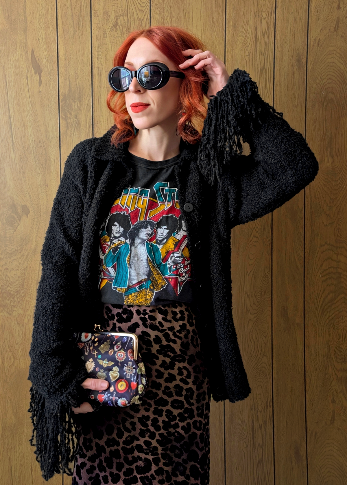 We'd pair this with the Strange Day tiered ruffle midi skirt for a gothy vibe, but of course, it's also great with a tee and jeans. The sleeves are long, so we especially love the sleeves pushed up a little to show off the fringe cuffs a bit more!