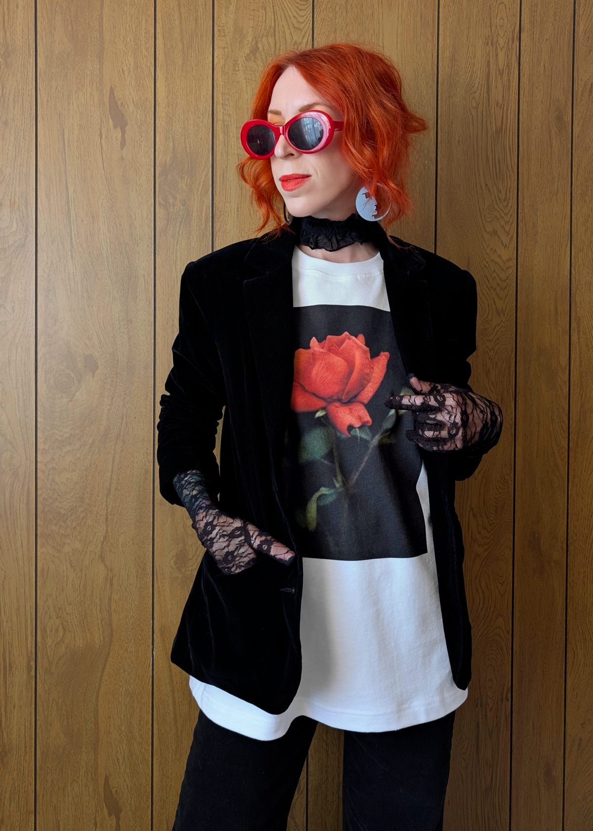 We love this with jeans and a tee for a casual '90s model-off-duty look!  Or go full on '60s rock and roll with bell bottoms and a voluminous blouse.