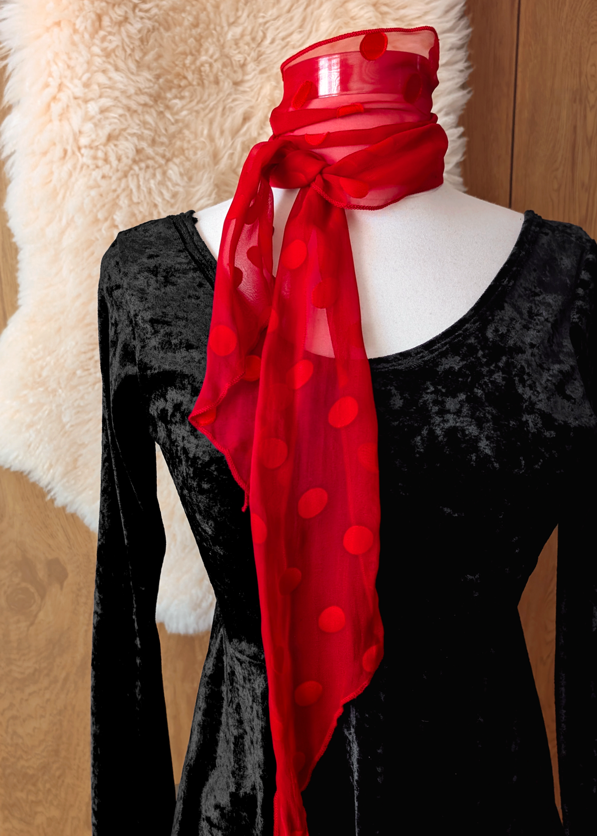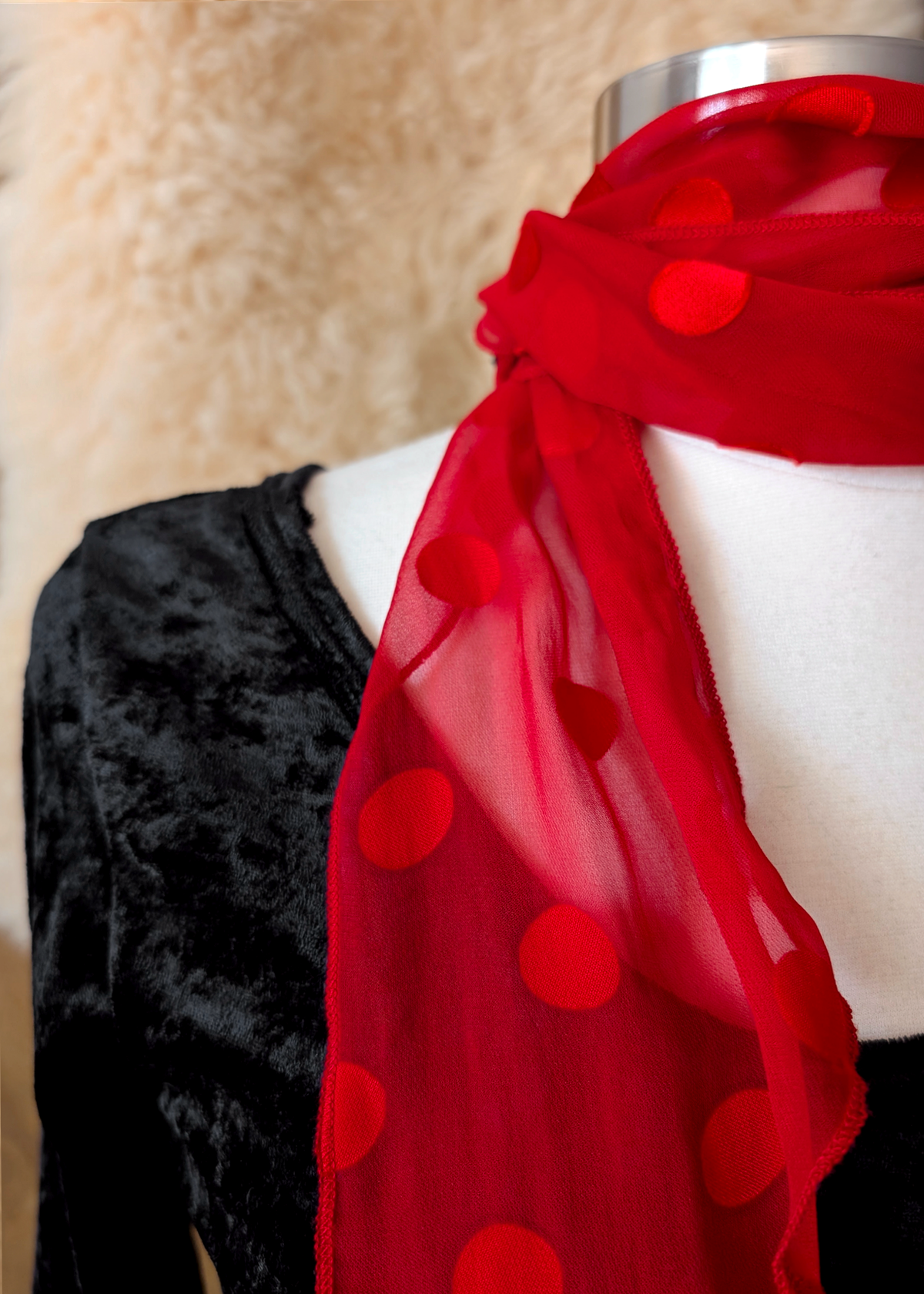 Materials: 100% silk burnout w/ silk charmeuse polka dots