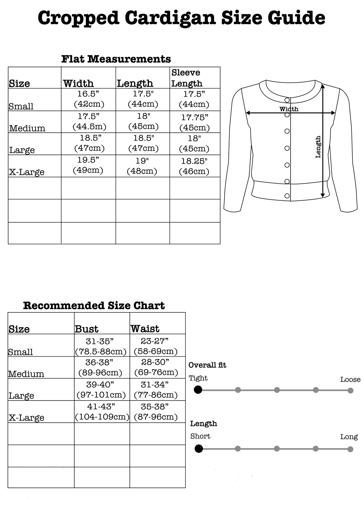 XL - Bust: 19.5" across unstretched | Length: 19" | Sleeve length: 18.25"
