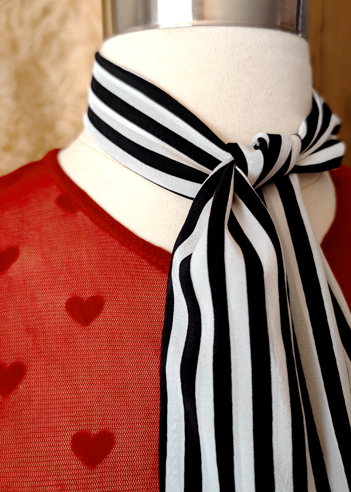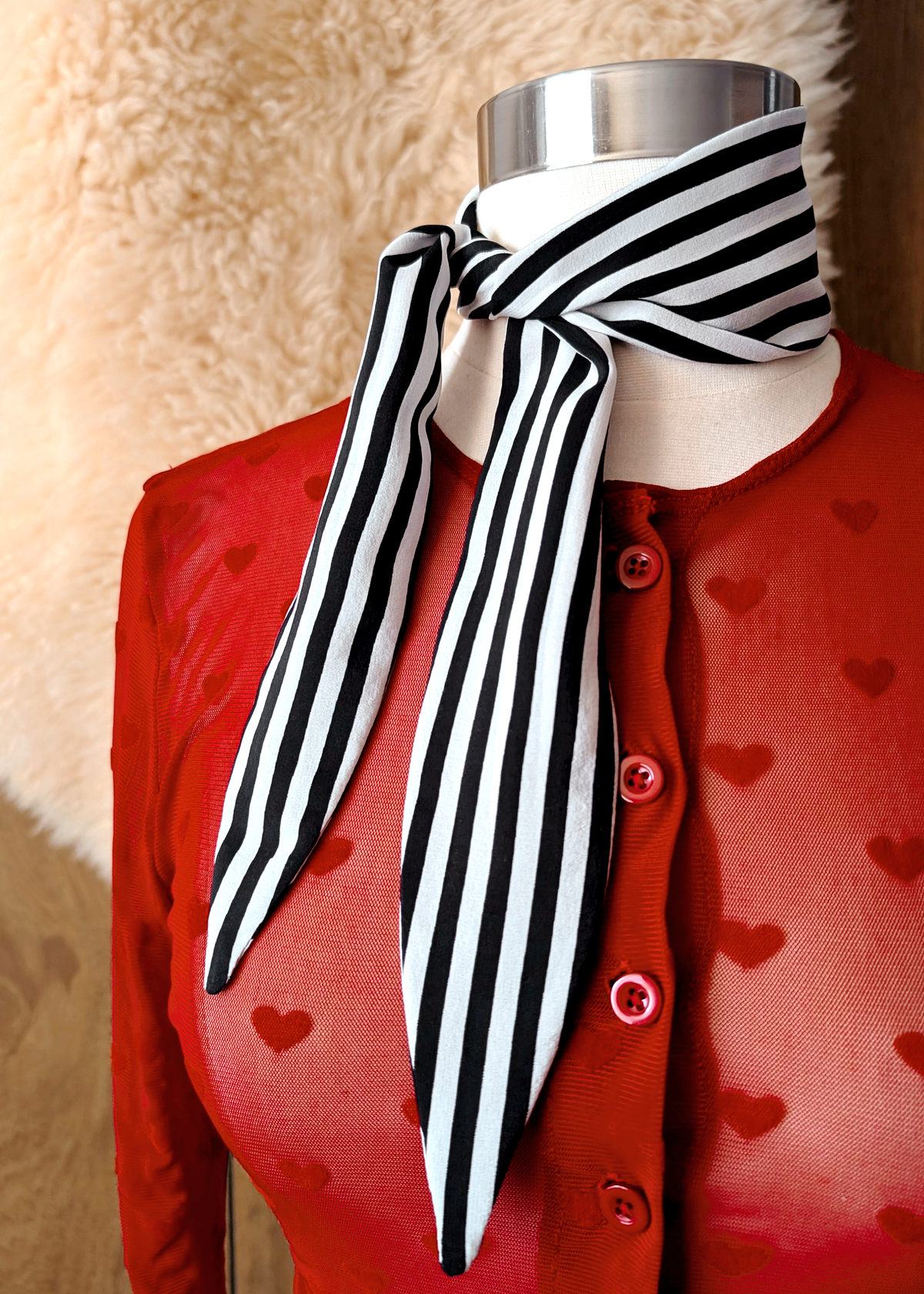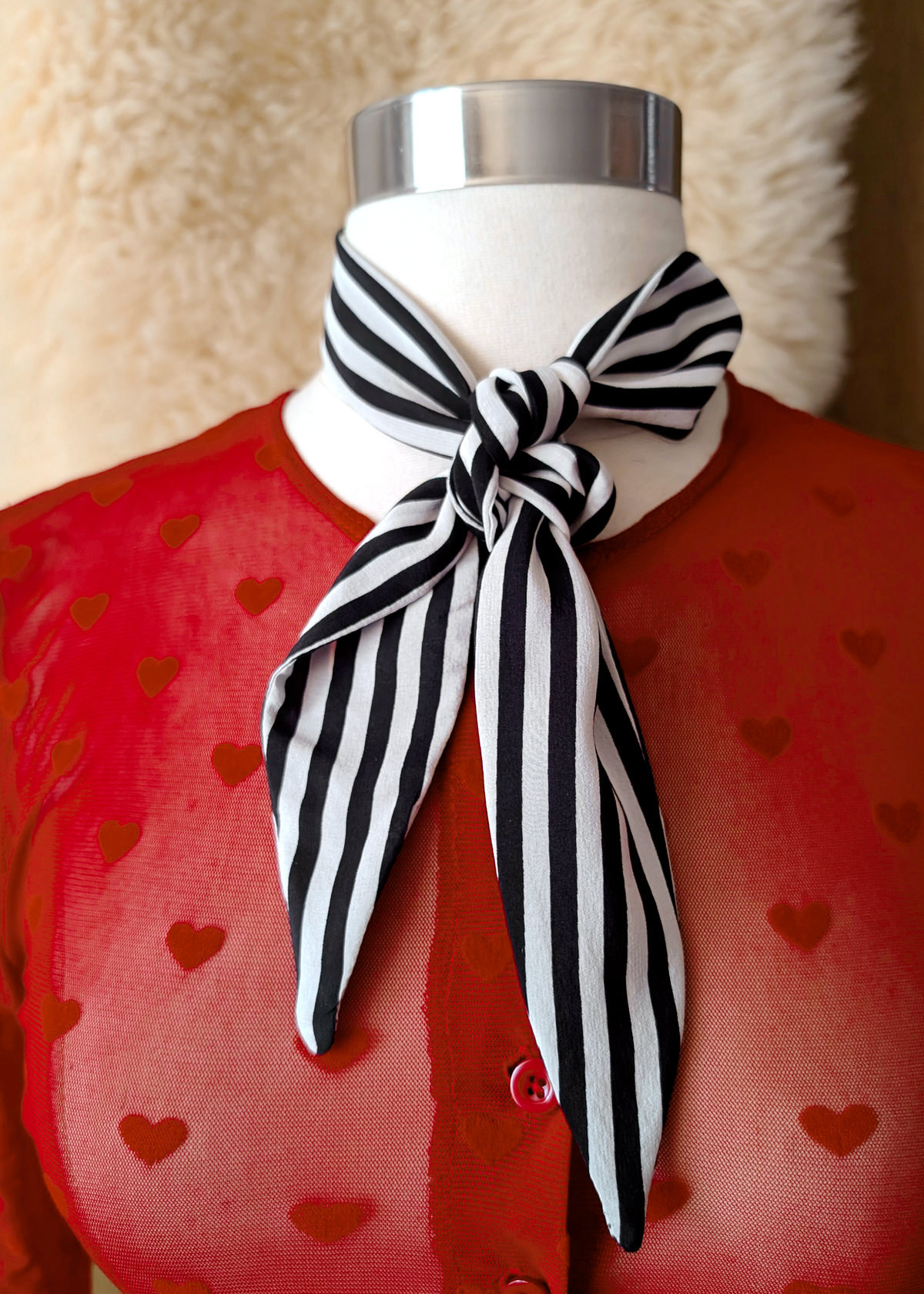 New Romantic Black & White Stripe Silk Scarf Tie