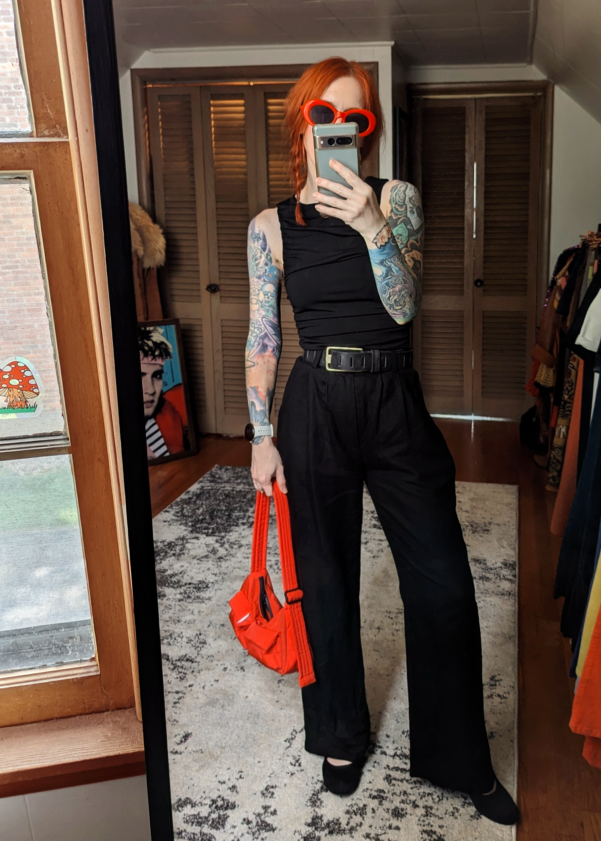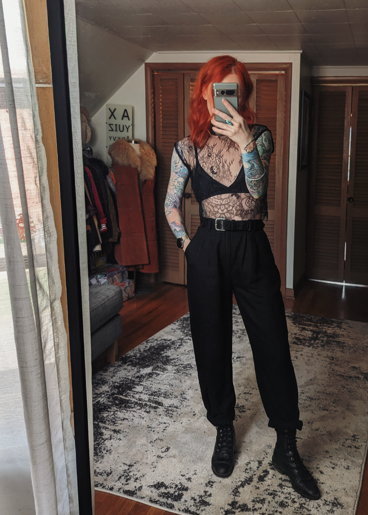 I'm all about tight-rolling the pants '80s style, throwing on some boots, and a lace crop top or stripe tee for major Madonna / New Romantic vibes! Pair 'em with a band tee and ankle boots for a casual but sorta dressy vibe, or really dress 'em up with a blouse or turtleneck and heels.