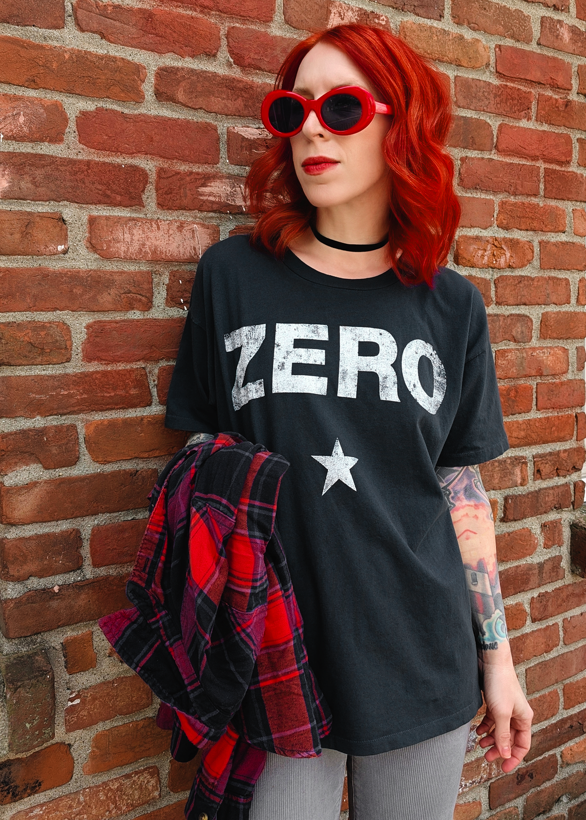 Killer Smashing Pumpkins ZERO tee featuring their iconic SP heart at back in red.
